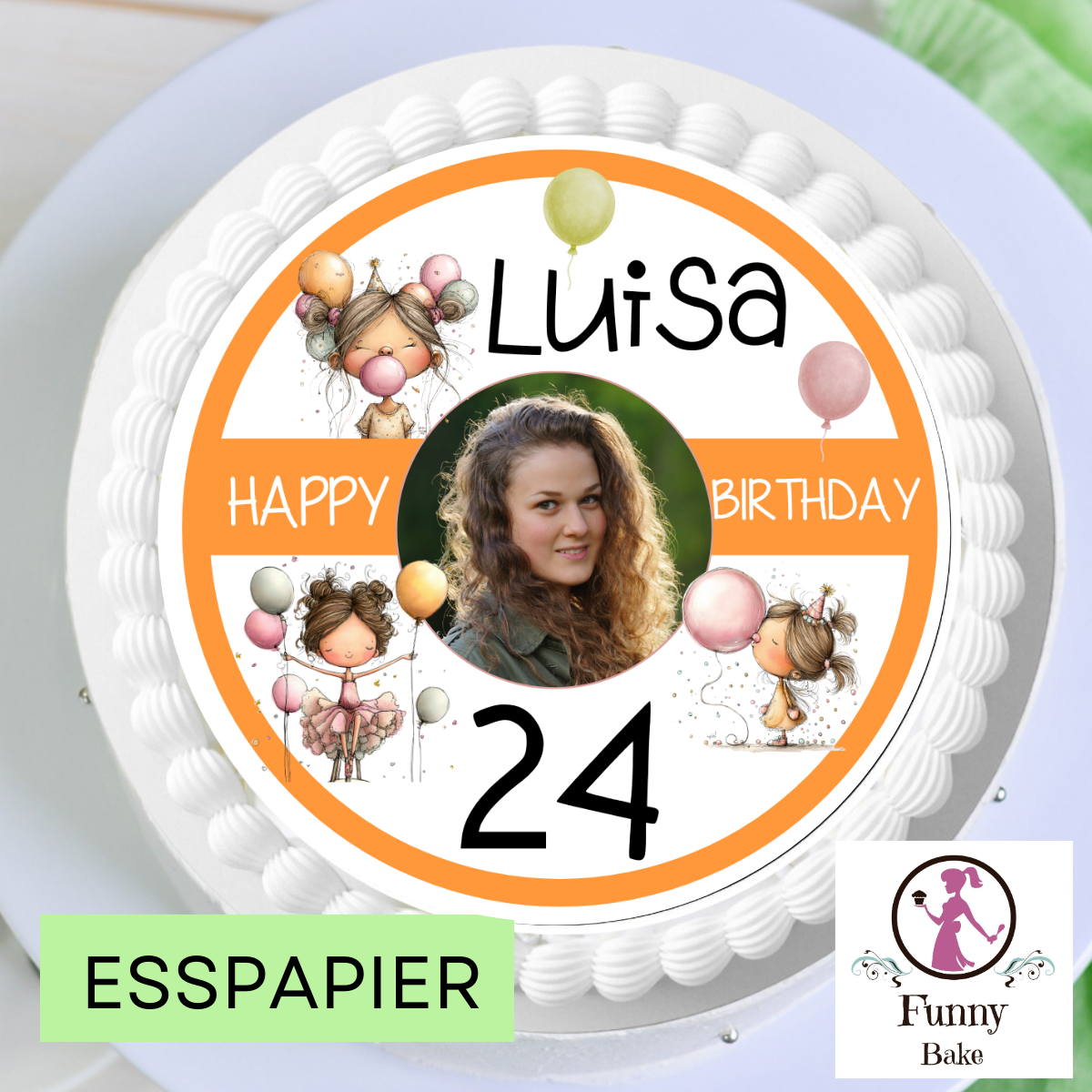 Tortenaufleger Geburtstag personalisiert mit Foto, Name & Zahl