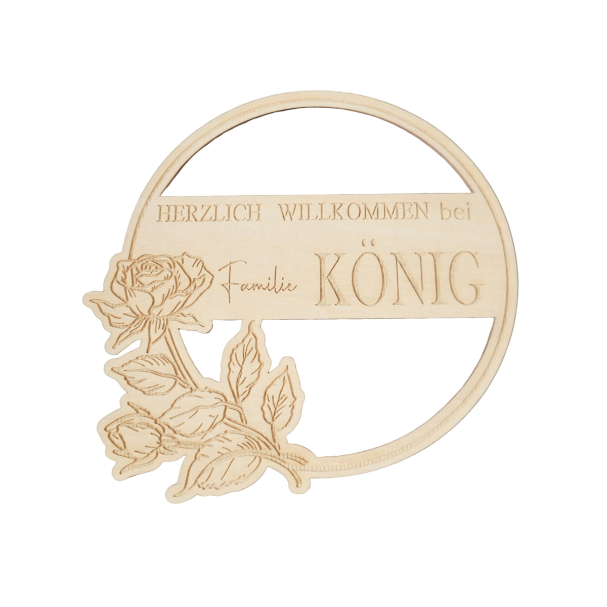 Begrüße deine Gäste mit einem liebevoll personalisierten Türkranz aus Holz! Mit dem eingravierten Namen wird dieser charmante Hingucker an deiner Tür zum fröhlichen Willkommensgruß. Perfekt, um jedem Besucher ein Lächeln ins Gesicht zu zaubern und deinem Zuhause eine persönliche Note zu verleihen.